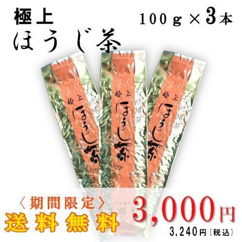 この冬ぴったりの「極上ほうじ茶100g×3本セット」が、なんと送料無料で手に入ります!
